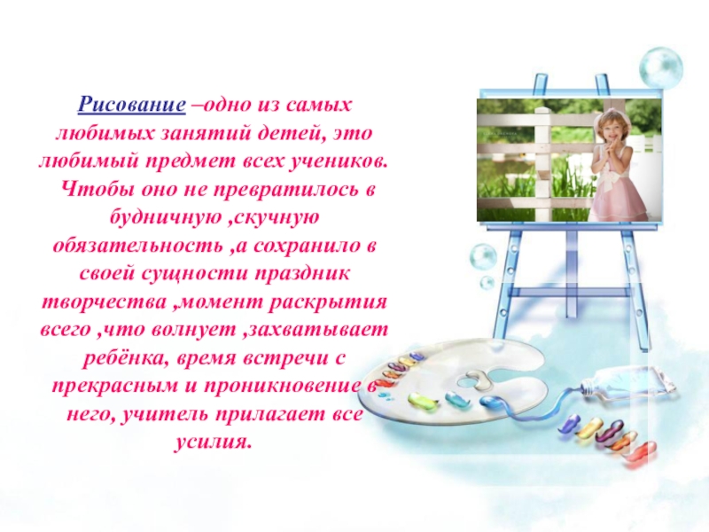 Слайд 4Рисование –одно из самых любимых занятий детей, это любимый предмет всех