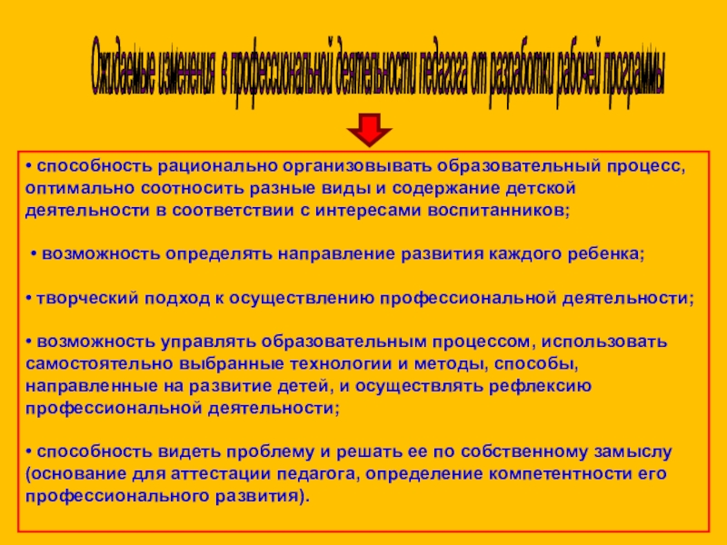 Слайд 3Ожидаемые изменения в профессиональной деятельности педагога от разработки рабочей программы