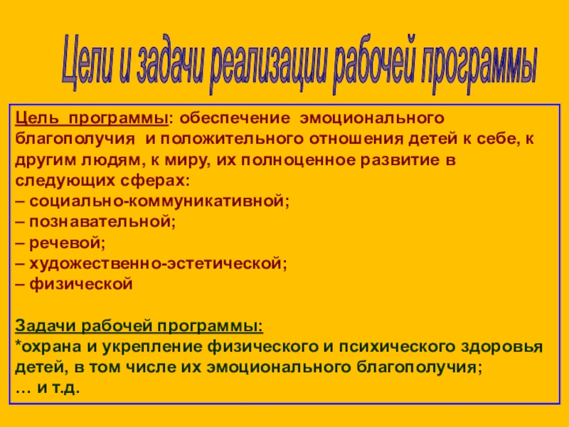 Слайд 13Цели и задачи реализации рабочей программы