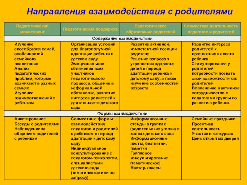 Слайд 28Направления взаимодействия с родителями