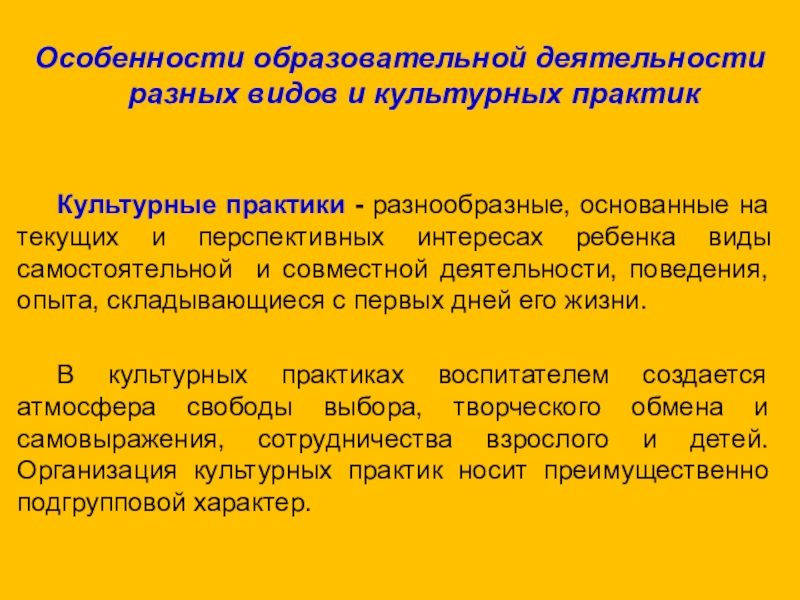 Слайд 24Особенности образовательной деятельности разных видов и культурных практик
