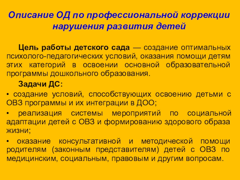 Описание ОД по профессиональной коррекции нарушения развития детей
