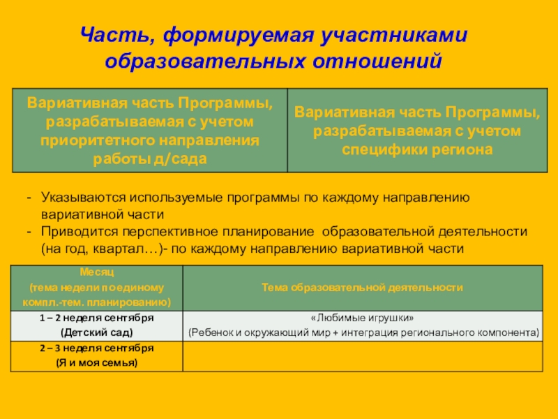 Приводится перспективное планирование образовательной деятельности (на год, квартал…)- по каждому направлению вариативной части