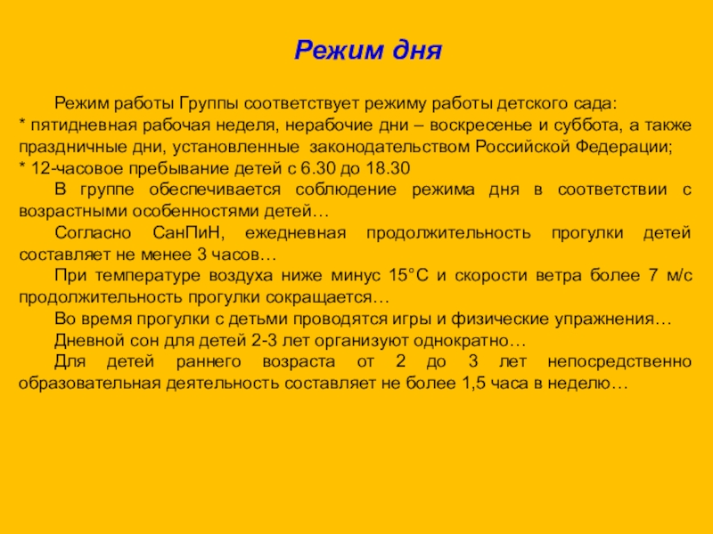 Слайд 36 Режим работы Группы соответствует режиму работы детского сада: