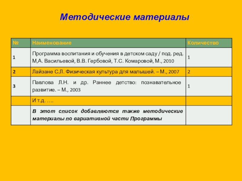 обеспеченности методическими материалами и средствами обучения и воспитания