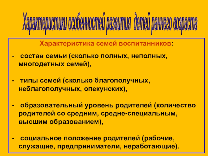 - значимые характеристики (характеристика особенностей развития детей конкретной группы, семей и др.)