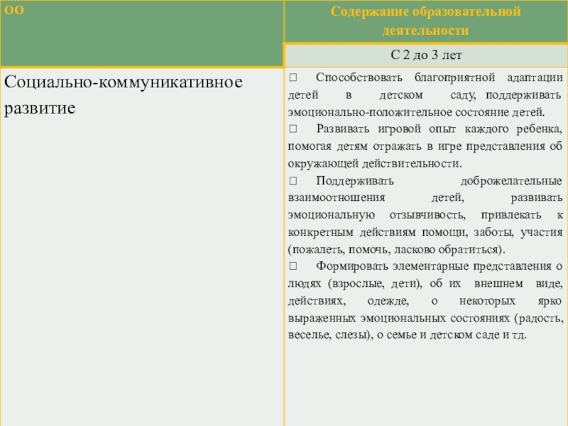 и положительного отношения детей к себе, к другим людям, к миру, их полноценное развитие в следующих сферах: