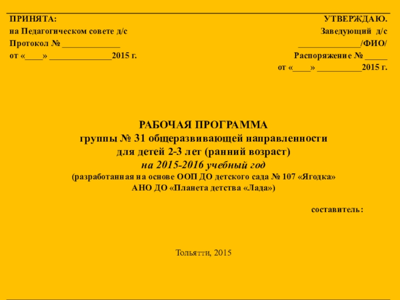 Слайд 1Рабочая программа группы раннего возраста