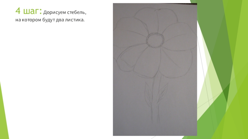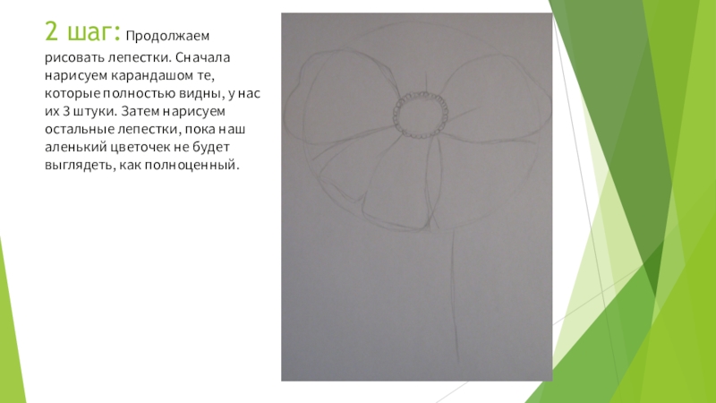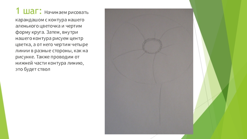 Слайд 41 шаг: Начинаем рисовать карандашом с контура нашего аленького цветочка и чертим