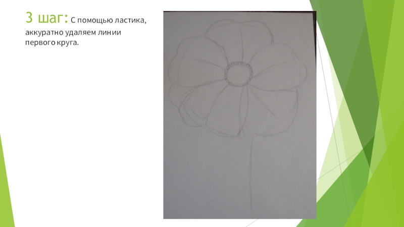 Слайд 63 шаг: С помощью ластика, аккуратно удаляем линии первого круга.
