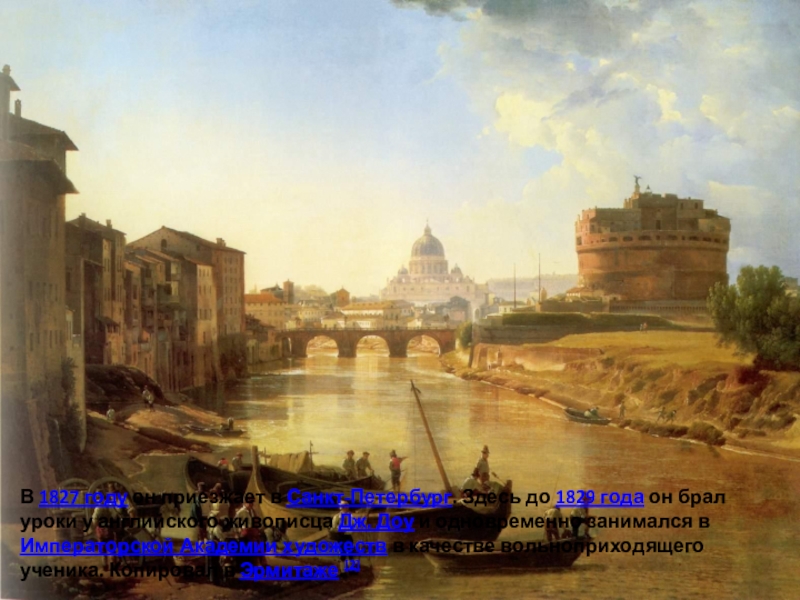 Слайд 5В 1827 году он приезжает в Санкт-Петербург. Здесь до 1829 года