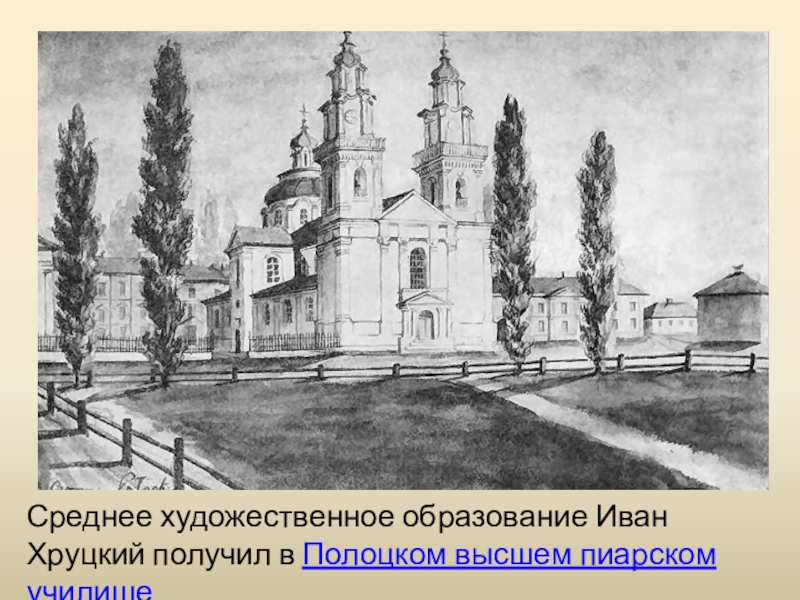 Слайд 4Среднее художественное образование Иван Хруцкий получил в Полоцком высшем пиарском училище