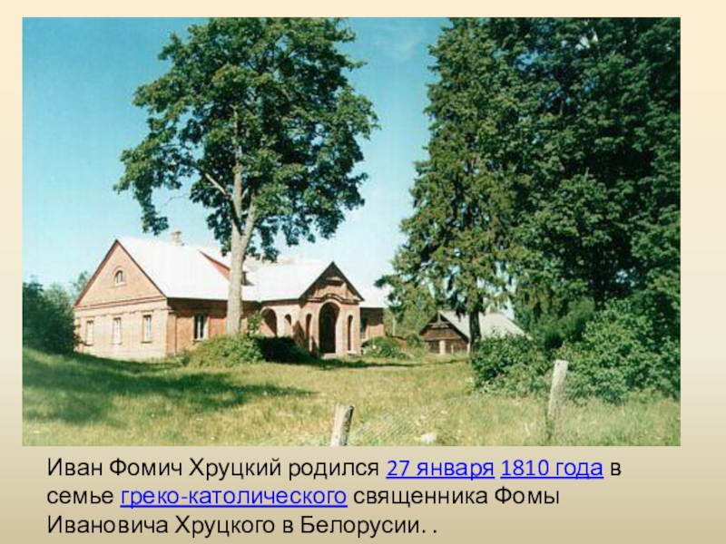 Слайд 3Иван Фомич Хруцкий родился 27 января 1810 года в семье греко-католического