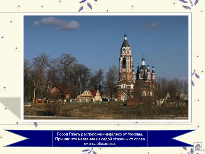 Слайд 4Город Гжель расположен недалеко от Москвы. Пришло это название из седой старины