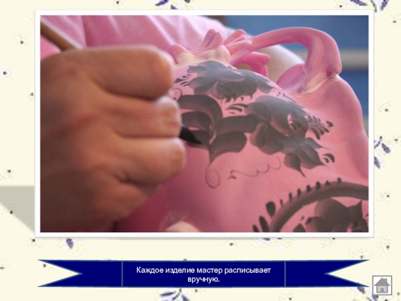 Слайд 12Каждое изделие мастер расписывает вручную.