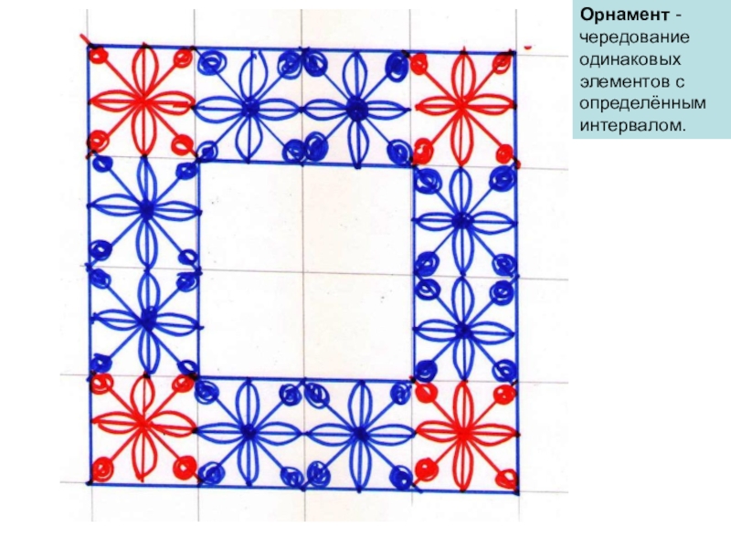 Слайд 14Орнамент - чередование одинаковых элементов с определённым интервалом.