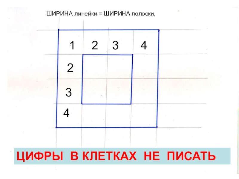 ШИРИНА линейки = ШИРИНА полоски,1223443ЦИФРЫ В КЛЕТКАХ НЕ ПИСАТЬ