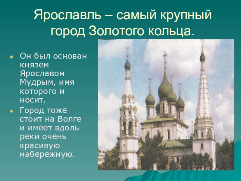 Слайд 11Ярославль – самый крупный город Золотого кольца.