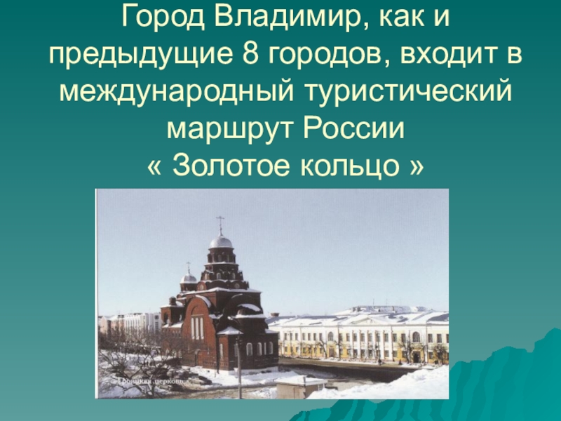 Слайд 20 Город Владимир, как и предыдущие 8 городов, входит в международный туристический