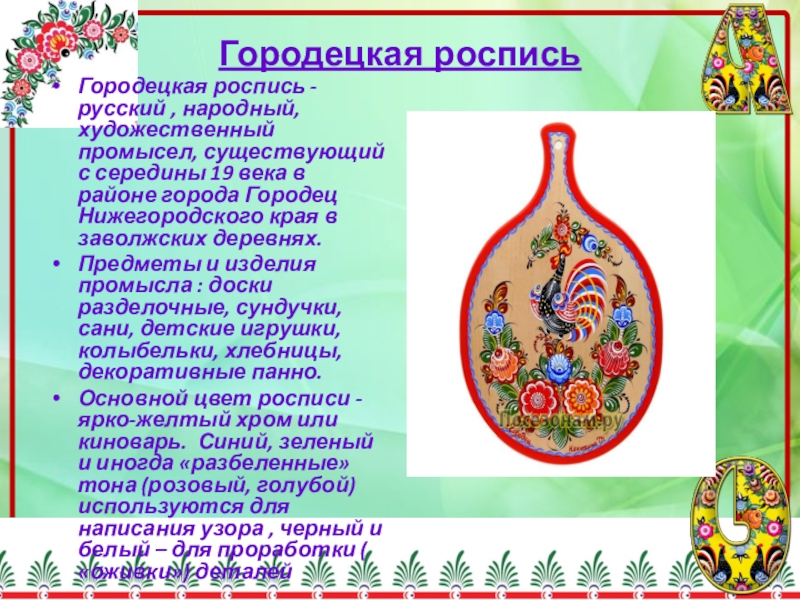Городецкая роспись - русский , народный, художественный промысел, существующий с