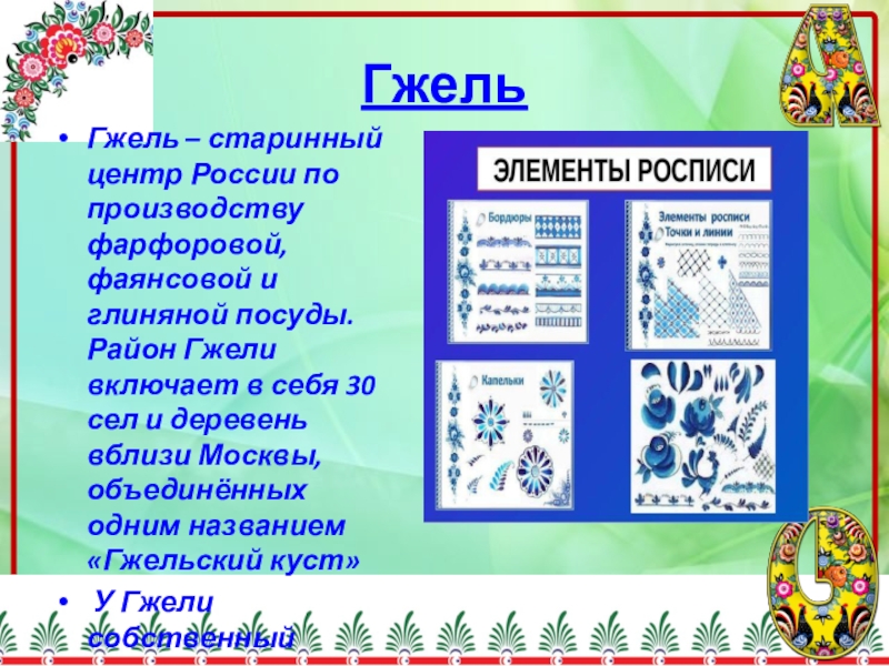 Гжель – старинный центр России по производству фарфоровой, фаянсовой и глиняной