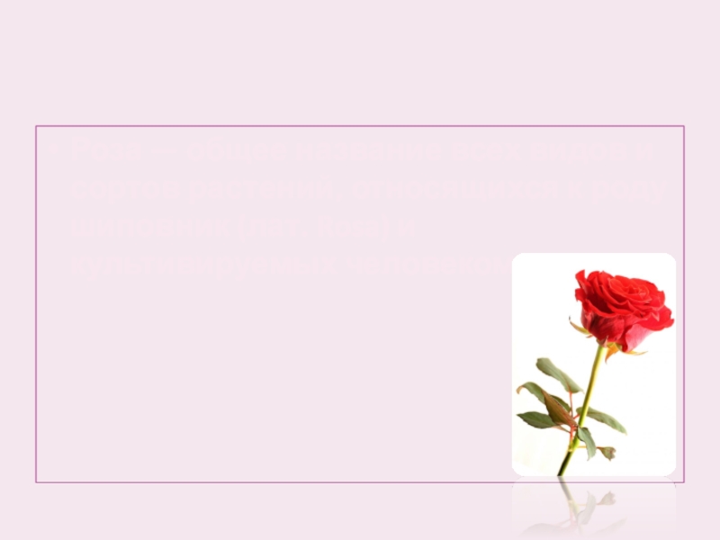 Слайд 3Роза — общее название всех видов и сортов растений, относящихся к
