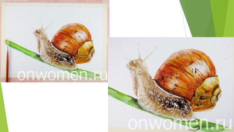 Презентация, доклад по изобразительному искусству:Улитка акварелью.3 класс.