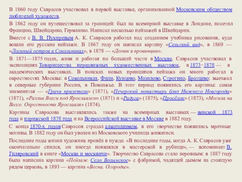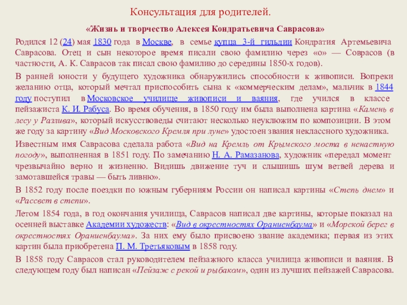 «Жизнь и творчество Алексея Кондратьевича Саврасова»
