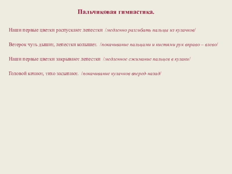 ● Пальчиковая гимнастика «Наши первые цветки»