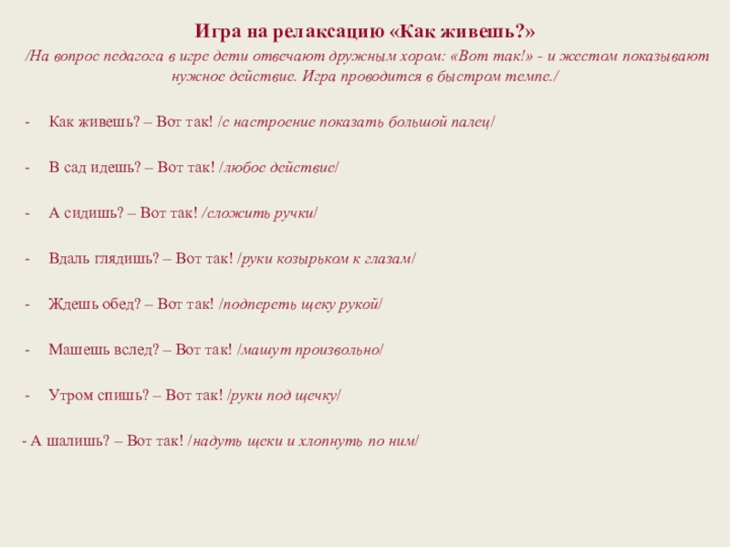 Слайд 10Игра на релаксацию «Как живешь?»