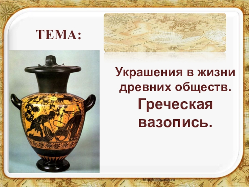 Украшения в жизни  древних обществ. Греческая  вазопись.ТЕМА: