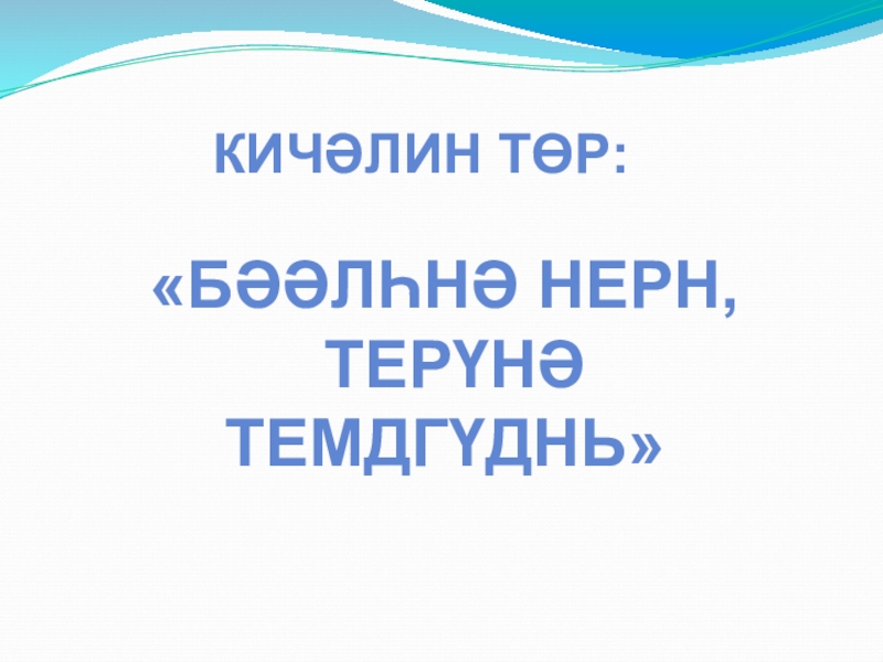 КИЧӘЛИН ТӨР:«БӘӘЛҺНӘ НЕРН, ТЕРҮНӘ ТЕМДГҮДНЬ»