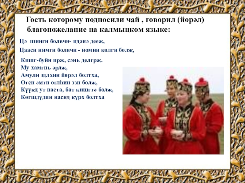 Гость которому подносили чай , говорил (йɵрəл) благопожелание