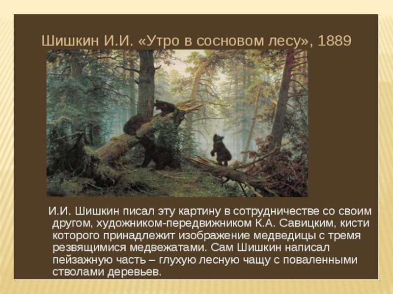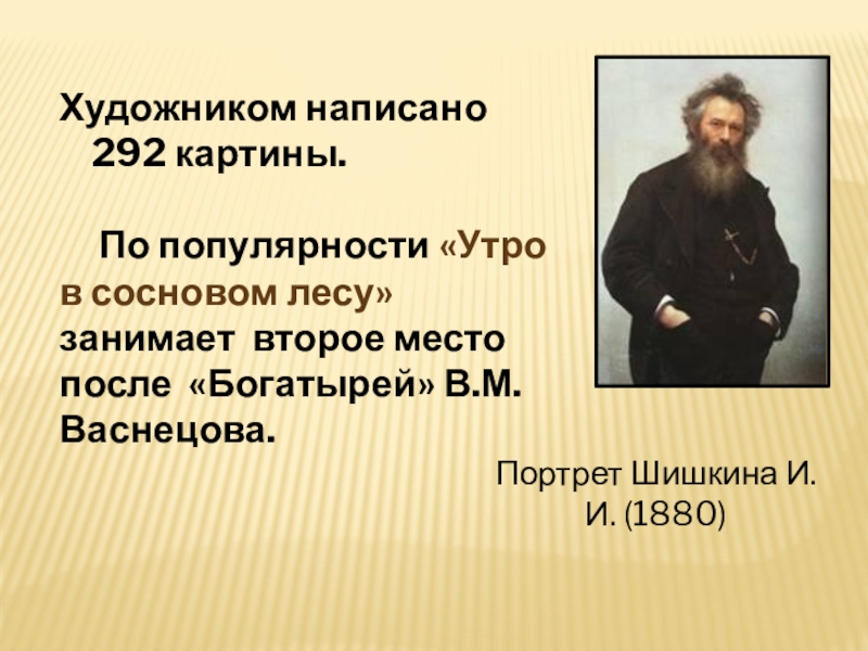 По популярности «Утро в сосновом лесу» занимает второе место после «Богатырей» В.М. Васнецова.