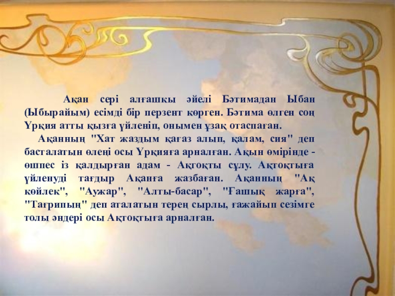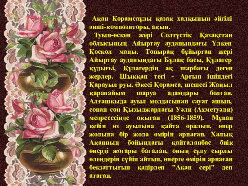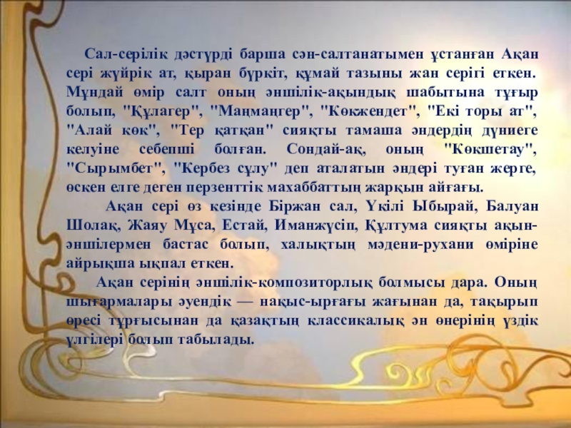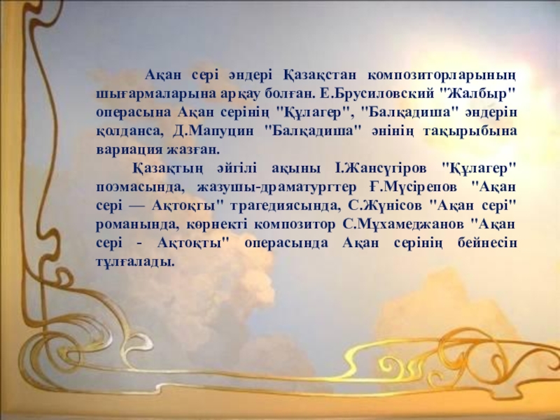 С.Жүнісов “Ақан сері” І. Жансүгіров “Құлагер”