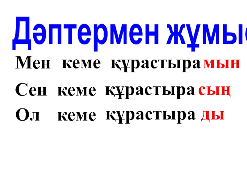 Дәптермен жұмысМенкемеқұрастырамынСенкемеқұрастырасыңОл кемеқұрастырады