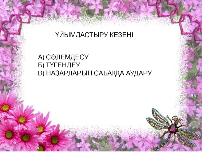 ҰЙЫМДАСТЫРУ КЕЗЕҢІА) СӘЛЕМДЕСУБ) ТҮГЕНДЕУВ) НАЗАРЛАРЫН САБАҚҚА АУДАРУ