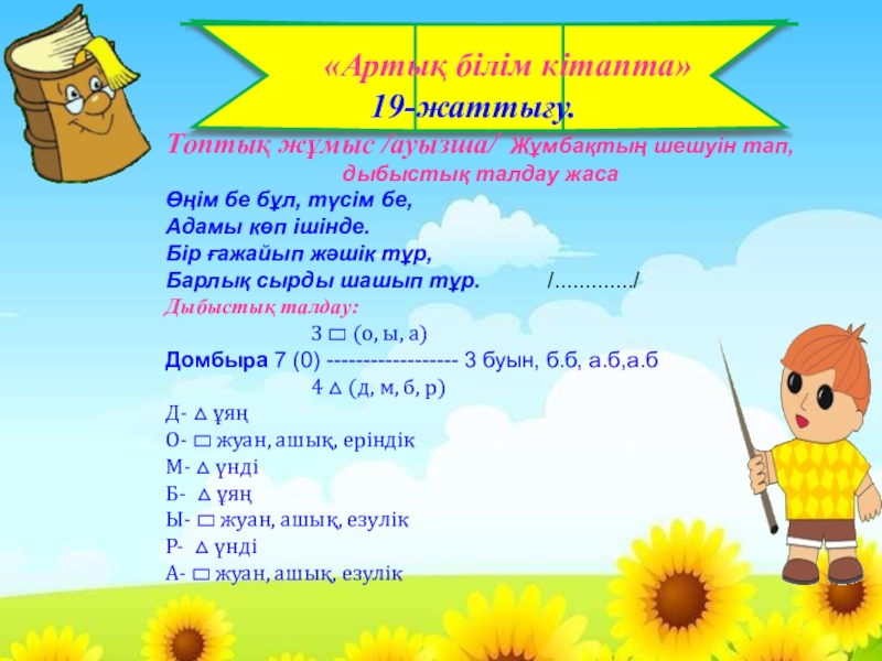 «Артық білім кітапта»19-жаттығу.Топтық жұмыс /ауызша/ Жұмбақтың шешуін тап,