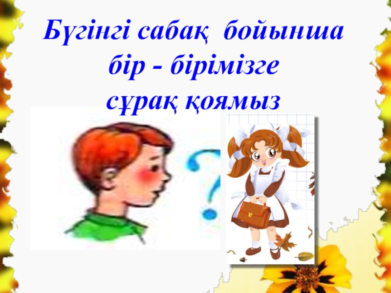 Бүгінгі сабақ бойынша бір - бірімізге сұрақ қоямыз