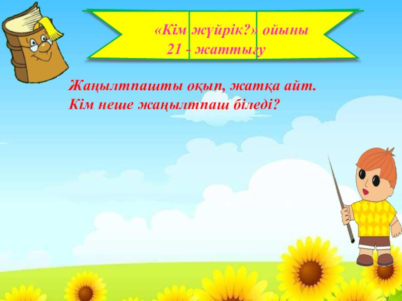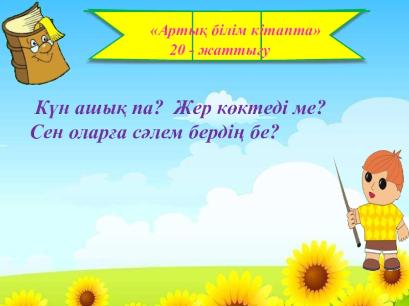 «Артық білім кітапта»20 - жаттығу Күн ашық па? Жер көктеді ме? Сен оларға