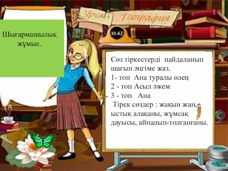 Шығармашылық жұмыс.Сөз тіркестерді пайдаланып шағын әңгіме жаз. 1- топ Ана туралы өлең