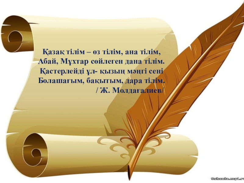 Қазақ тілім – өз тілім, ана тілім,Абай, Мұхтар сөйлеген дана тілім.Қастерлейді ұл- қызың мәңгі сеніБолашағым, бақытым, дара