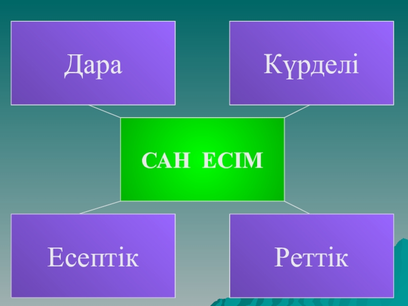 Сабақты қорытындылау12341. Сан есім дегеніміз не?2. Сан есімнің сұрақтары3. Жұмбақ