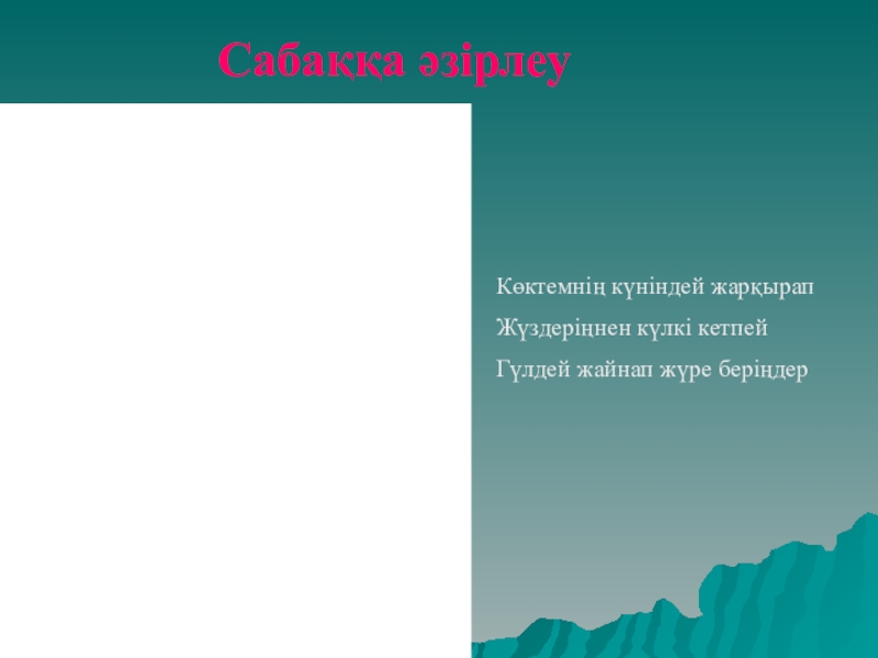 Көктемнің күніндей жарқырапЖүздеріңнен күлкі кетпей Гүлдей жайнап жүре беріңдерСабаққа әзірлеу