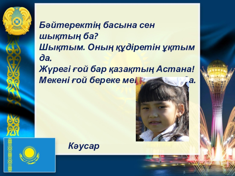Слайд 9Бәйтеректің басына сен шықтың ба?