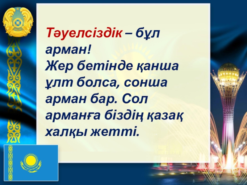 Слайд 11Тәуелсіздік – бұл арман!