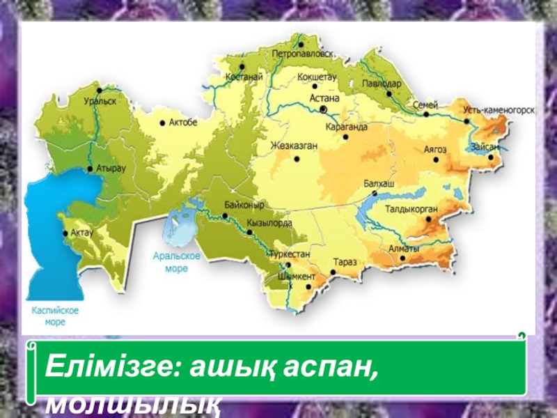 Слайд 4Елімізге: ашық аспан, молшылық