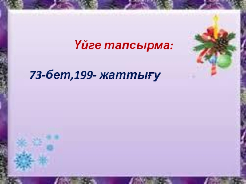 Үйге тапсырма:73-бет,199- жаттығу