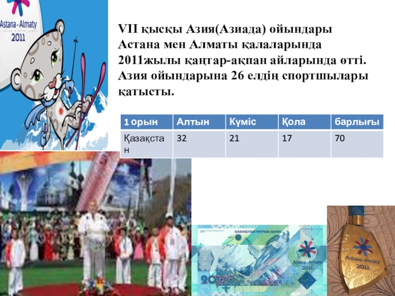VII қысқы Азия(Азиада) ойындары Астана мен Алматы қалаларында 2011жылы қаңтар-ақпан