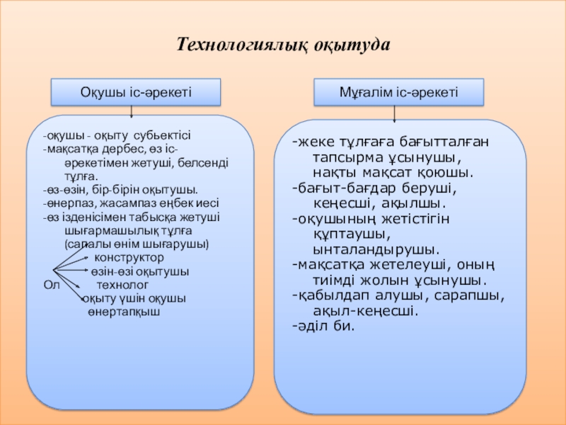 -жеке тұлғаға бағытталған тапсырма ұсынушы, нақты мақсат қоюшы.